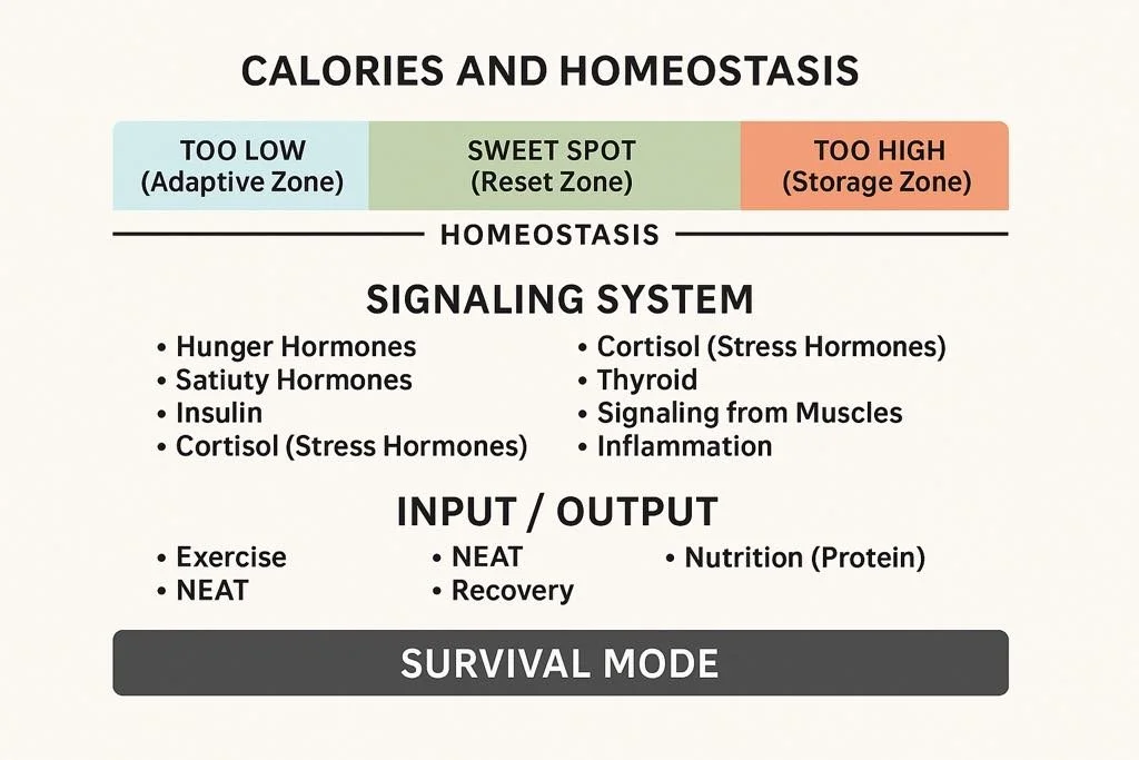 Too Low → Survival Mode (your metabolism slows and clings to calories)